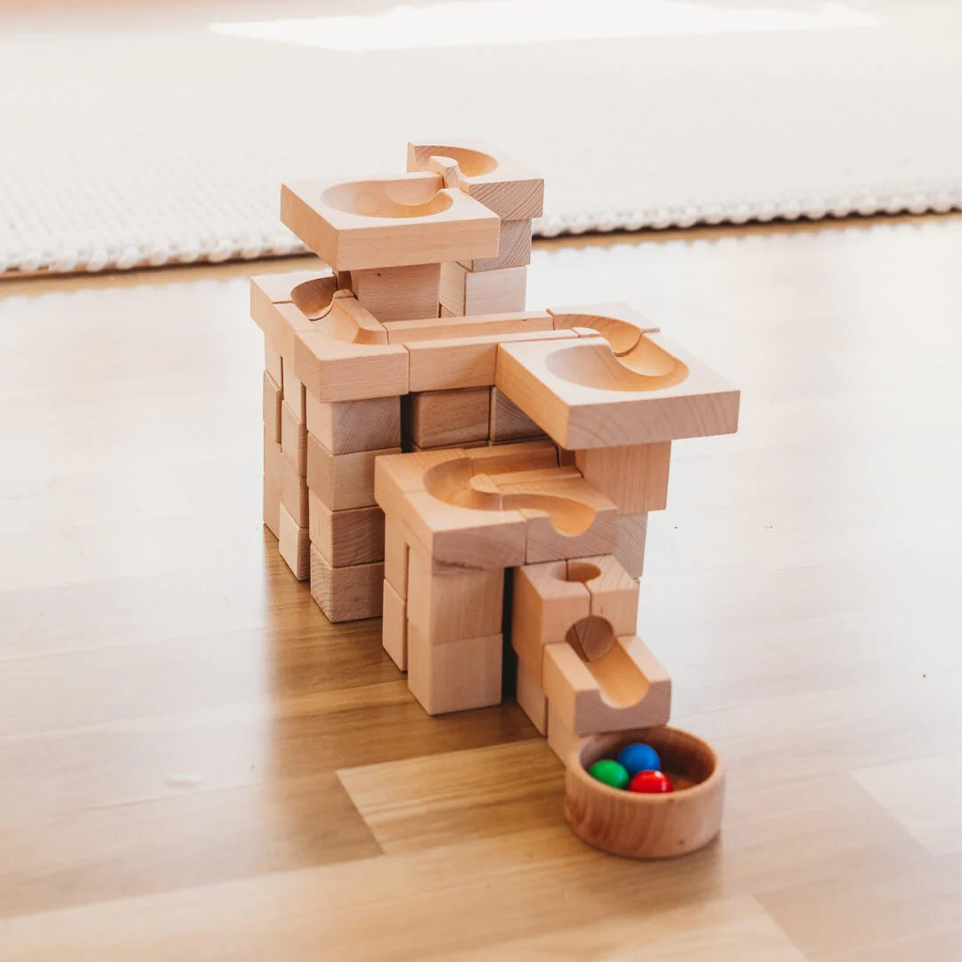 Beautifully handcrafted in Germany, Kaden Ball Runs inspire creativity and problem-solving as children design endless wooden ball tracks experimenting with gravity, motion, and cause and effect. A timeless, heirloom-quality toy for curious minds.