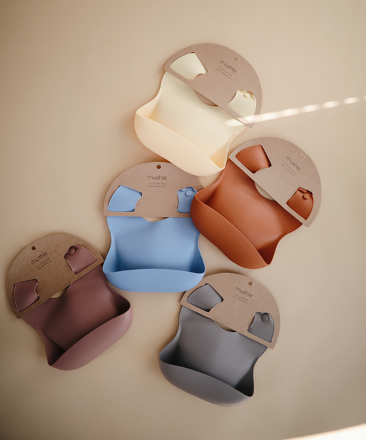 Mushie Silicone Baby Bib - Light Shell