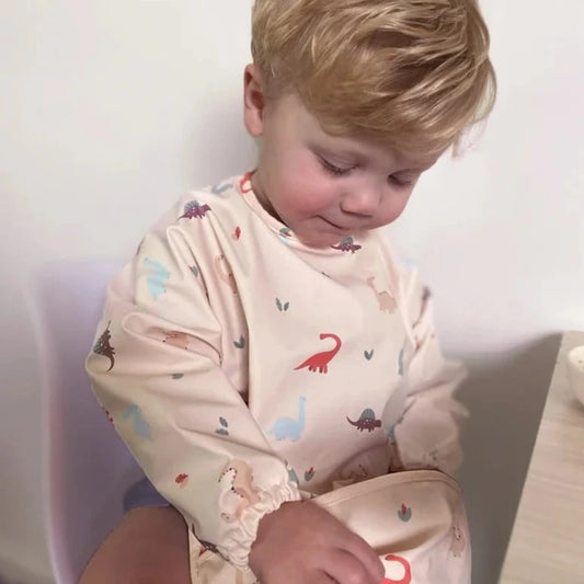 Over The Dandelions Waterproof Long-sleeve Bib - Dinosaur