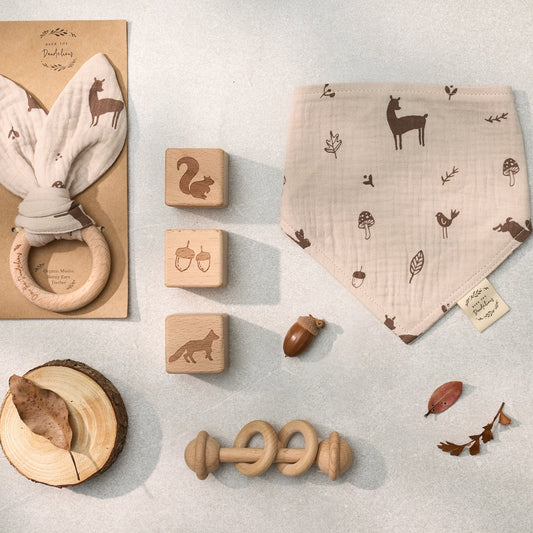 Over The Dandelions Organic Muslin Bib - Woodlands