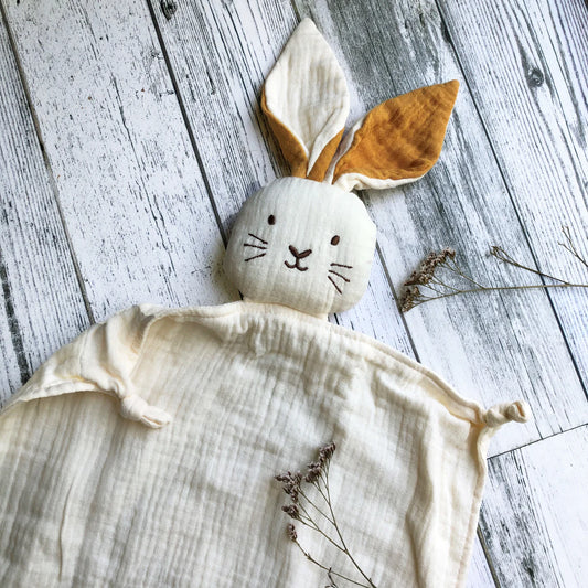 Over The Dandelions Organic Muslin Bunny Lovey - Milk
