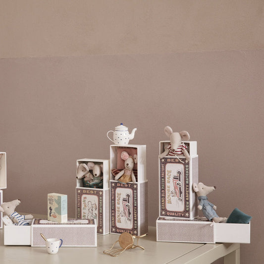 A world in which matchboxes can be beds for toy mice, princesses make perfect teatime companions, and adventures can be found on a friendly forest walk. A world where cats and mice are friends. A world of childhood imagination – and this is a world Maileg values.