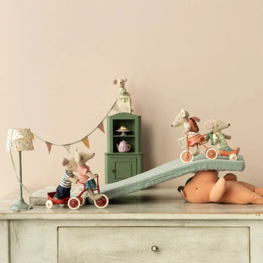 A world in which matchboxes can be beds for toy mice, princesses make perfect teatime companions, and adventures can be found on a friendly forest walk. A world where cats and mice are friends. A world of childhood imagination – and this is a world Maileg values.