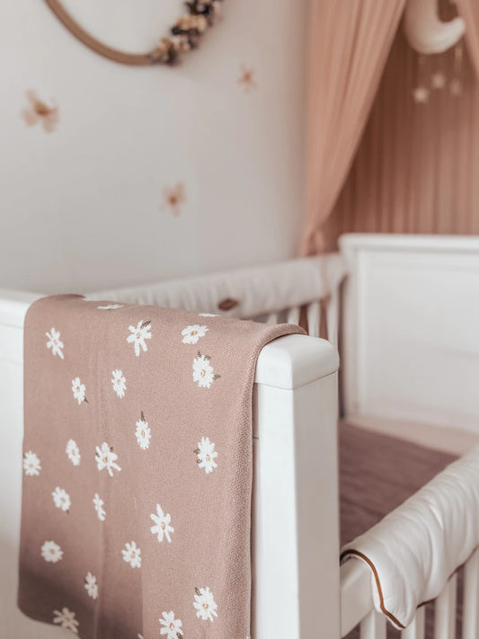 Over The Dandelions Organic Cotton Daisy Blanket - Mushroom