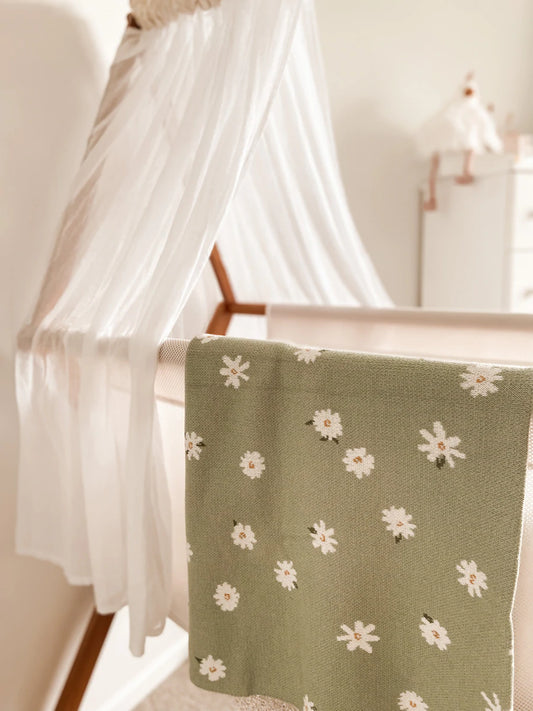 Over The Dandelions Organic Cotton Daisy Blanket - Thyme