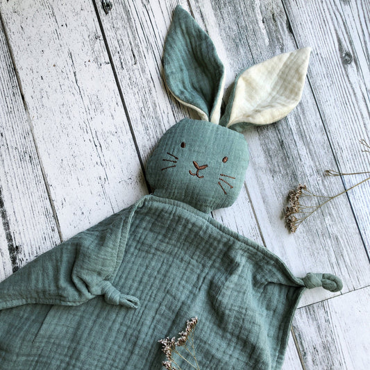 Over The Dandelions Organic Muslin Bunny Lovey - Sage