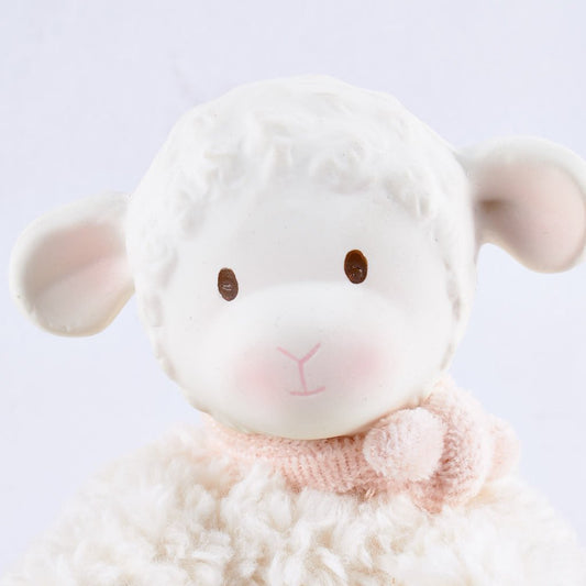 Tikiri Lila Lamb With Rubber Teether Head & Pink Bow