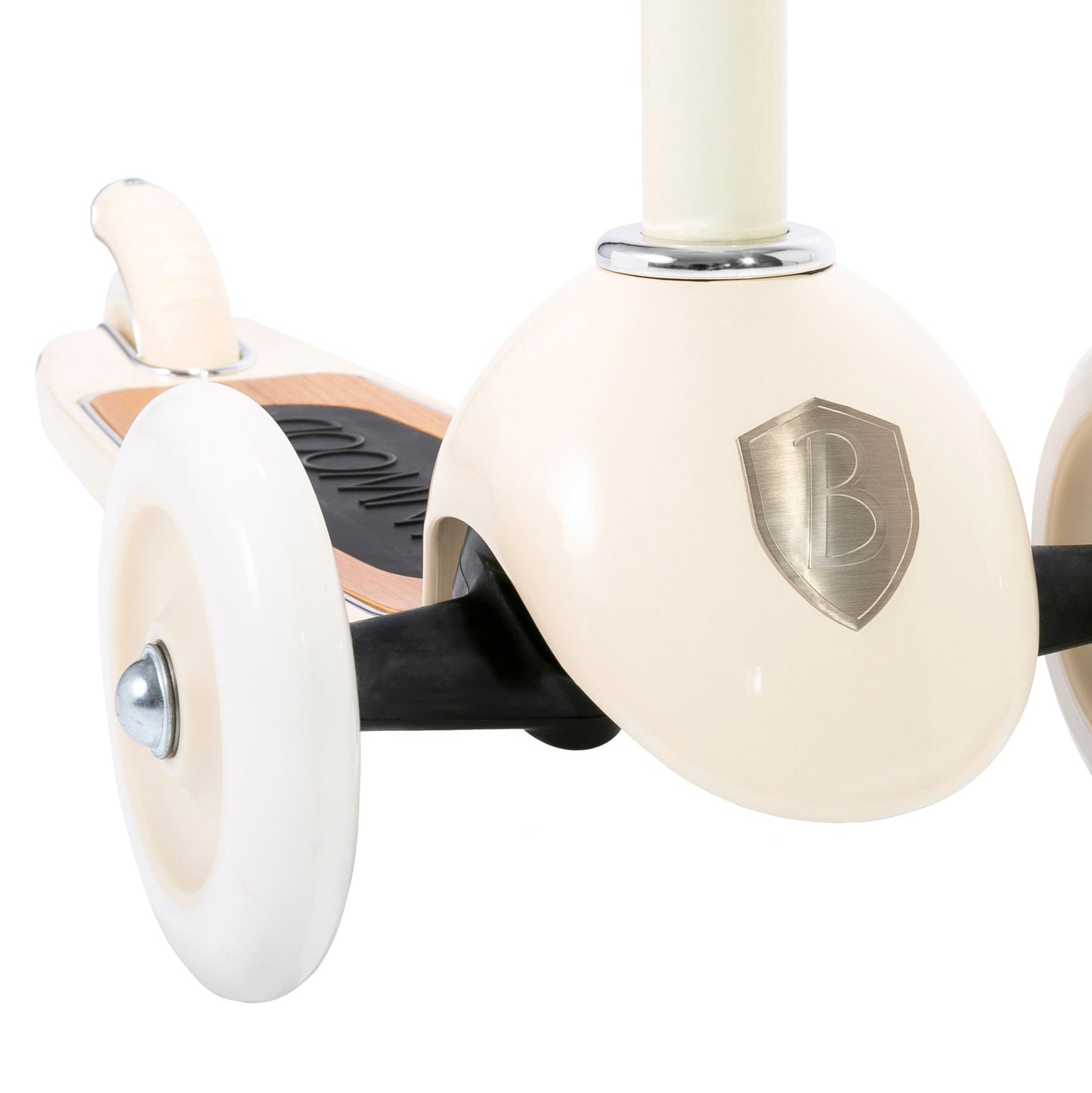 The design combines details with great functionality. This retro scooter is equipped with a T-handlebar that can be gradually adapted to three different heights as your kid grows. The rubber grips provide a good hold and the scooter deck with anti-slip tape ensures a stable and easy foothold.